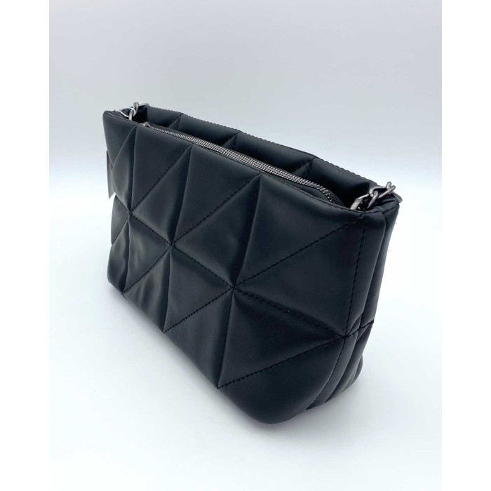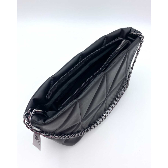 Маленька стильна жіноча сумочка 67024 з екошкіри високої якості. Сумка відкривається за допомогою блискавки. Всередині сумка на щільній підкладці, має дві кишені: на блискавці і відкрита. Сумка прикрашена ланцюжком, який можна використовувати як ручку.