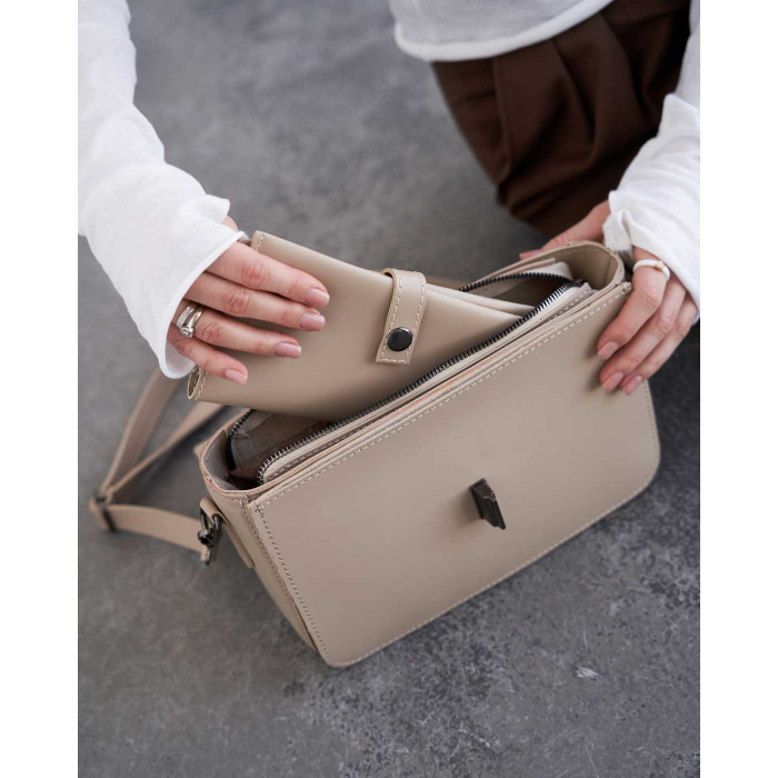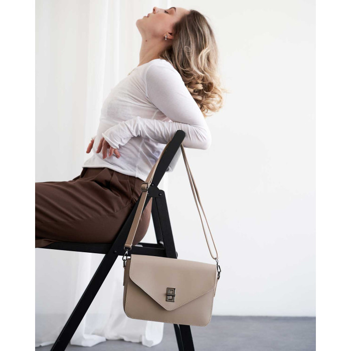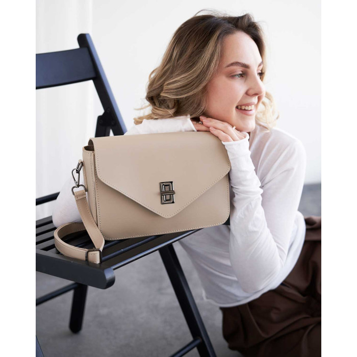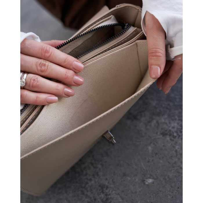 Сумка жіноча 11109 від виробника «Welassie» Україна, колір бежевий, матеріал сумки екошкіра високої якості. Сумка відкривається за допомогою замка та застібки-блискавки. Сумка на щільній якісній підкладці. Усередині має відкриту кишеню для дрібних предметів. Також має відкриту кишеню під кришкою і ще один карман на застібці зовні.