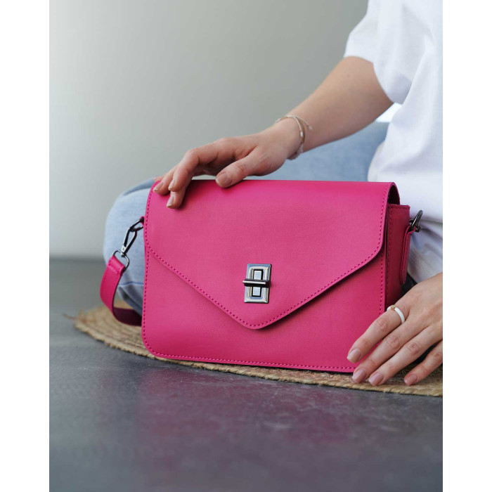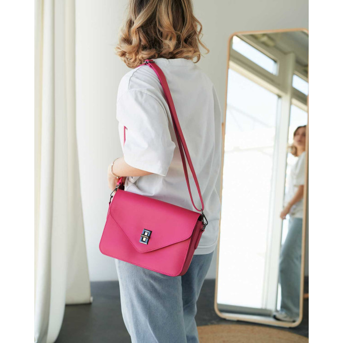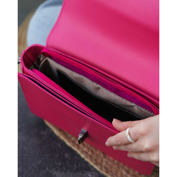 Сумка жіноча 11119 від виробника «Welassie» Україна, колір рожевий, матеріал сумки екошкіра високої якості. Сумка відкривається за допомогою замка та застібки-блискавки. Сумка на щільній якісній підкладці. Усередині має відкриту кишеню для дрібних предметів. Також має відкриту кишеню під кришкою і ще один карман на застібці зовні.