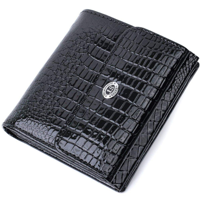 Гарний гаманець середнього розміру з натуральної шкіри високої якості, з тисненням під рептилію.Зовні виріб прошитий рівним рядком по краю і прикрашений металевим логотипом компанії виробника, який розміщений на клапані посередині.Портмоне доповнено надійною фурнітурою та міцною підкладкою. Укомплектований гаманець у фірмову картонну коробку білого кольору. Виріб стане ідеальним подарунком для дівчини будь-якого віку.