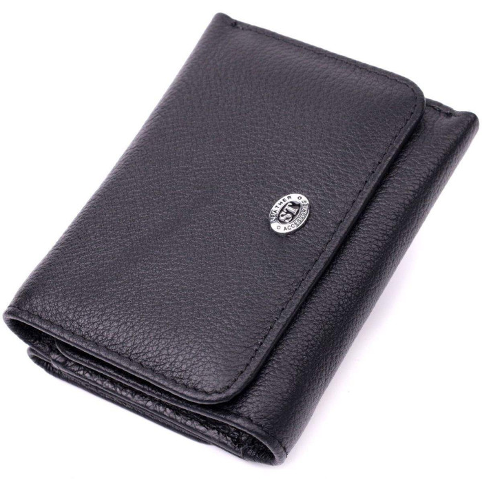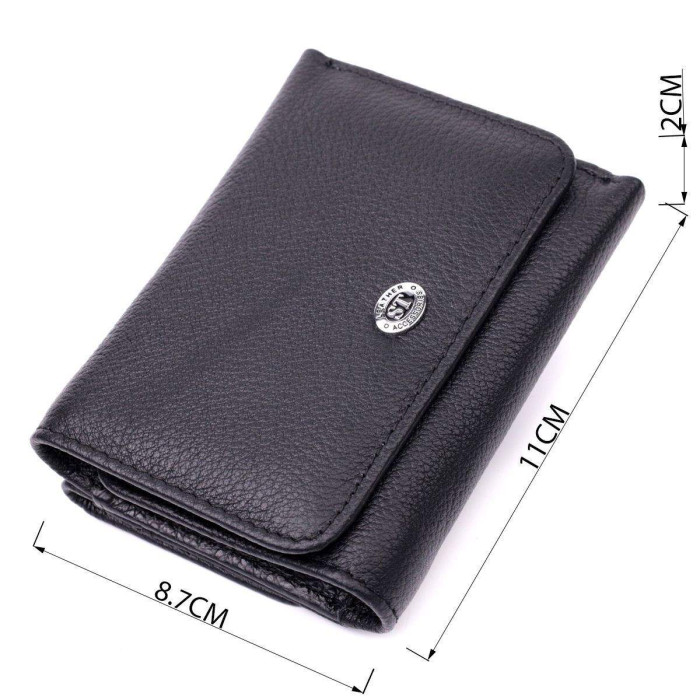 Жіночий гаманець горизонтального типу та зручного розміру з натуральної шкіри найвищої якості. Аксесуар складається з двох відділень для купюр, зовнішньої кишені з відділенням для кредитки, що закривається клапаном на кнопку, чотирьох осередків для карток, двох прихованих кишень та комірки під плівкою. Портмоне доповнено надійною фурнітурою та міцною підкладкою. Укомплектований гаманець у фірмову картонну коробку білого кольору. Виріб стане ідеальним подарунком для жінки будь-якого віку.