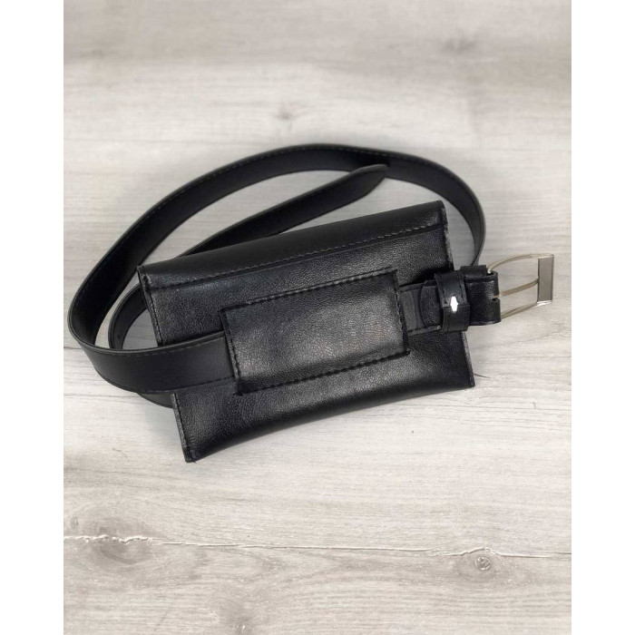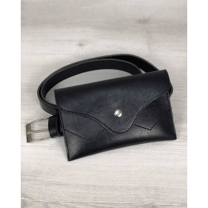 Жіночий клатч на пояс, виготовлений з штучної шкіри високої якості. Кришка відкривається за допомогою кнопки. Усередині одне відділення. Кришка закривається на кнопку. Довжина поясного ременя 105 см.