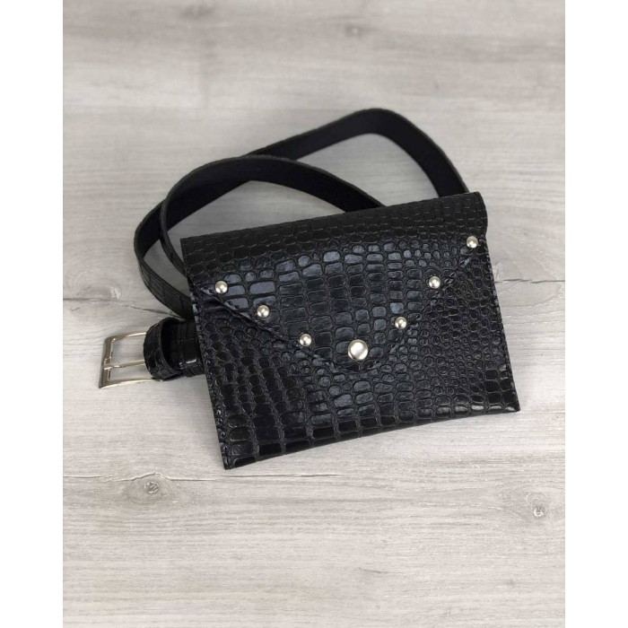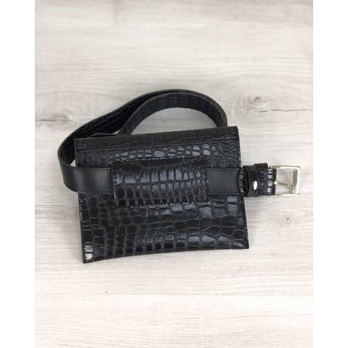 Жіноча сумка на пояс чорний крокодил WeLassie