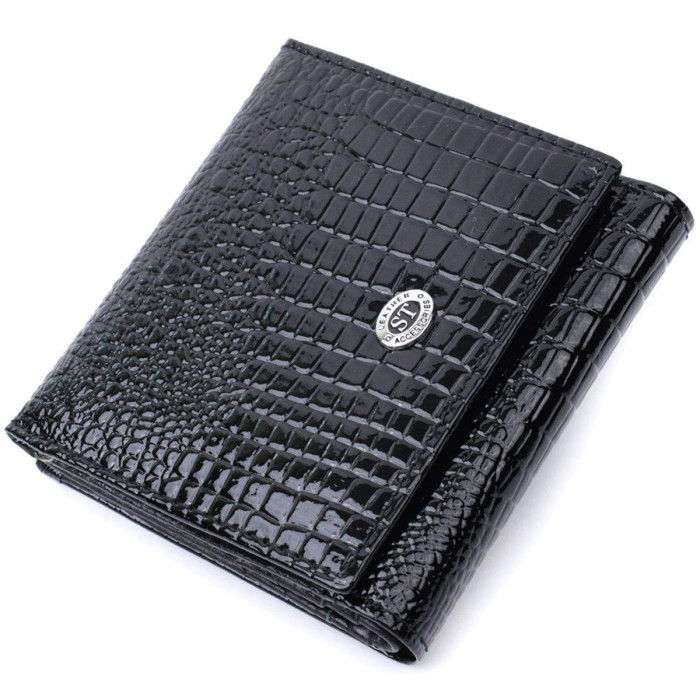 Універсальний гаманець для жінок із високоякісної лакованої шкіри із тисненням під рептилію. Має все необхідне, щоб стати Вам незамінним аксесуаром у повсякденному житті. Завдяки своєму компактному розміру аксесуар легко поміщається в найменшу сумочку. Ви легко помістите в нього паперові купюри, монети, документи, картки. На лицьовій стороні внизу посередині розташований металевий логотип виробника, що є запорукою якості виробу. Запакований аксесуар у білу щільну картонну коробку з фірмовим логотипом.
