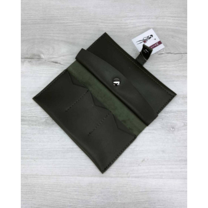Жіночий гаманець WeLassie оливковий, виготовлений з штучної шкіри високої якості. Гаманець м'який, поділений на чотири відділи: для купюр, візиток, дрібниці. Відділ для купюр знаходиться під відділом візиток і під відділом для дрібниці.