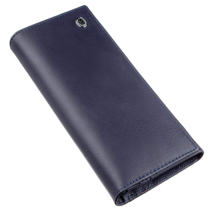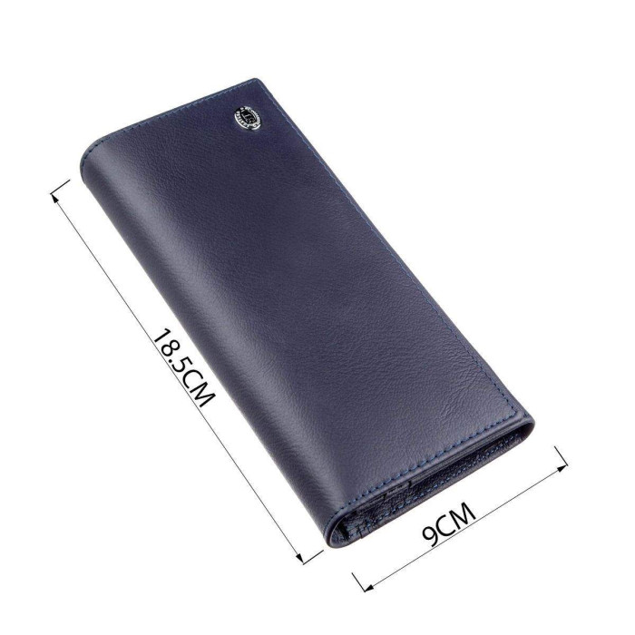 Виразний гаманець для чудових жінок будь-якого віку і положення. Якісно виконаний з натуральної шкіри з зернистою фактурою. Колір темно-синій, тому підійде під будь-який гардероб. Виглядає аксесуар дуже стильно і модно. Наповнення гаманця представлено у вигляді трьох основних відділень, відділення на блискавці, монетниці на клямці, кишенями для карток і візиток, а також зовнішнім відділенням на тильній стороні виробу. Даний аксесуар стане прекрасним подарунком, не тільки для Вас, але і для близької людини. Упакований гаманець в фірмову щільну коробку білого кольору.