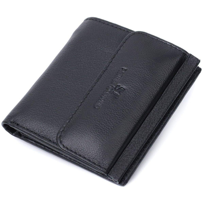 Практичний гаманець середнього розміру з натуральної шкіри найвищої якості. Зовні виріб прошитий рівним рядком по краю і прикрашений тисненням логотипу компанії виробника, розміщеного на клапані посередині. Портмоне доповнено надійною фурнітурою та міцною підкладкою. Укомплектований гаманець у фірмову картонну коробку білого кольору. Виріб стане ідеальним подарунком для дівчини будь-якого віку.