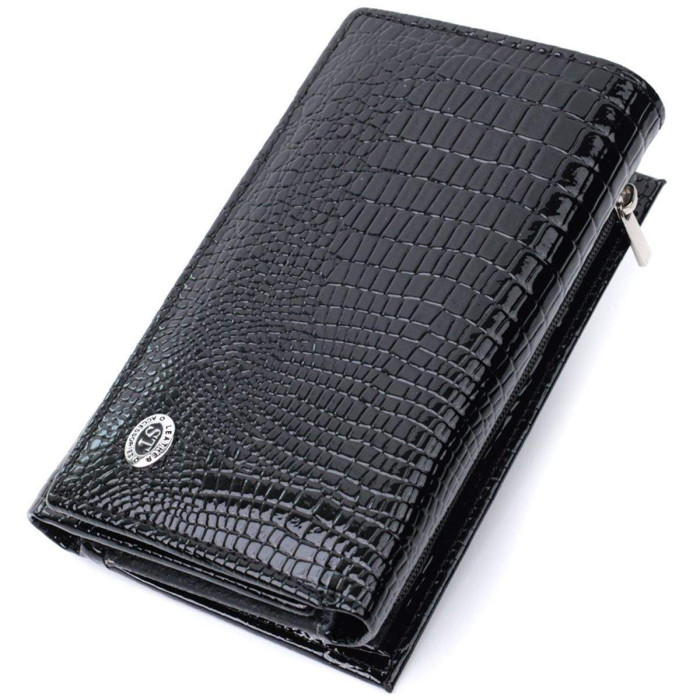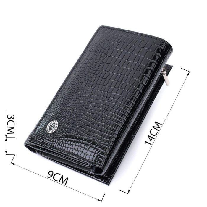 Горизонтальний жіночий гаманець середнього розміру з натуральної шкіри високої якості, з тисненням під рептилію. Зовні виріб прикрашений металевим логотипом компанії виробника. Портмоне доповнено надійною фурнітурою та міцною підкладкою. Укомплектований гаманець у фірмову картонну коробку білого кольору. Виріб стане ідеальним подарунком для дівчини будь-якого віку.