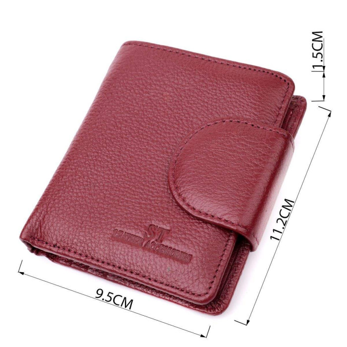 Практичний гаманець для жінок які цінують якість та практичність. Аксесуар із натуральної відмінної шкіри, він складається з двох містких відділень для купюр, кишені на блискавці, чотирьох кишень під плівкою, п'яти осередків для карт, трьох прихованих кишень та кишені для монет зовні. Портмоне доповнено надійною фурнітурою та міцною підкладкою. Запакований гаманець у фірмову картонну коробку білого кольору.