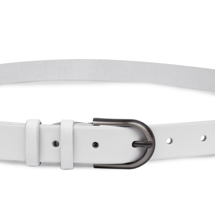 Класичний білий жіночий ремінь з відмінною якістю виконання і матеріалів. Має приємну гладку фактуру і акуратну непомітну пряжку. Виконаний з натуральної високоякісної шкіри підвищеної міцності. Такий ремінь стане хорошим подарунком для дорої людини на будь-яке свято.