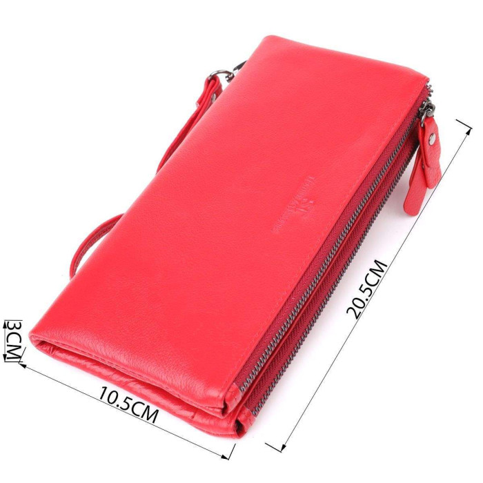 Яскравий гаманець-клатч, який відрізняється своєю місткістю. У цю модель легко поміститься ваш смартфон. Таким чином, модель здатна замінити вечірню сумочку. Носити клатч можна за допомогою шкіряного ремінця на зап'ястя. Дві місткі кишені допоможуть зручно розкласти вам гроші, також клатч має достатньо слотів для кредиток. Перевагою даного кольору є те, що він не прив'язує вас до певної палітри кольорів в гардеробі. Він підходить під усе. Сам клатч м'який і приємний на дотик. На лицьовій стороні по центру - тиснений логотип виробника, що є знаком якості та оригінальності виробу. Усередині клатч зроблений з натуральної шкіри та щільного текстилю. У комплекті йде фірмова коробка із логотипом бренду. Шкіряний клатч стане найкращим подарунком для близької людини.