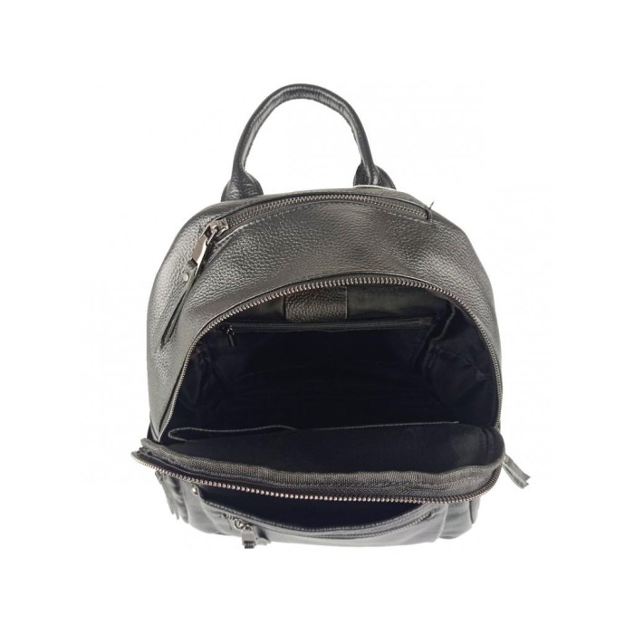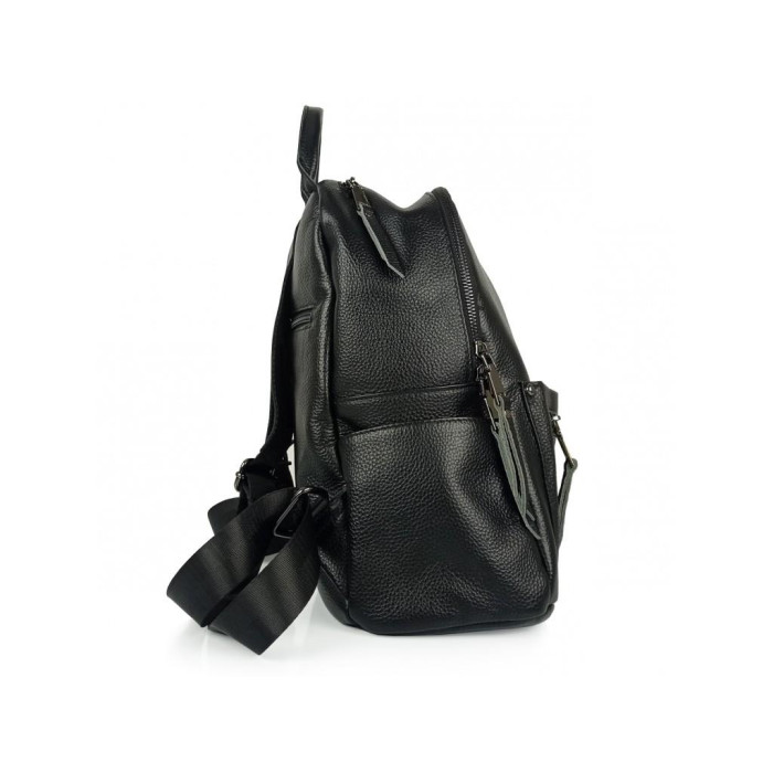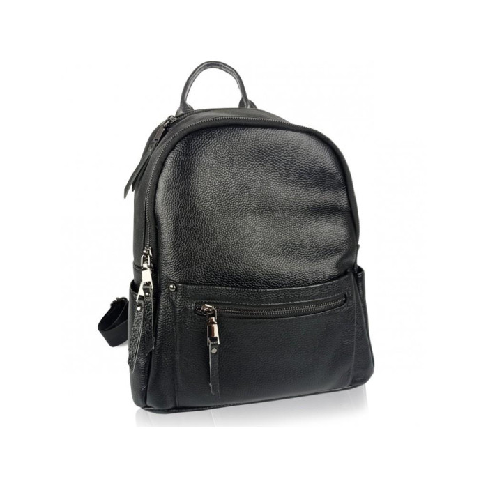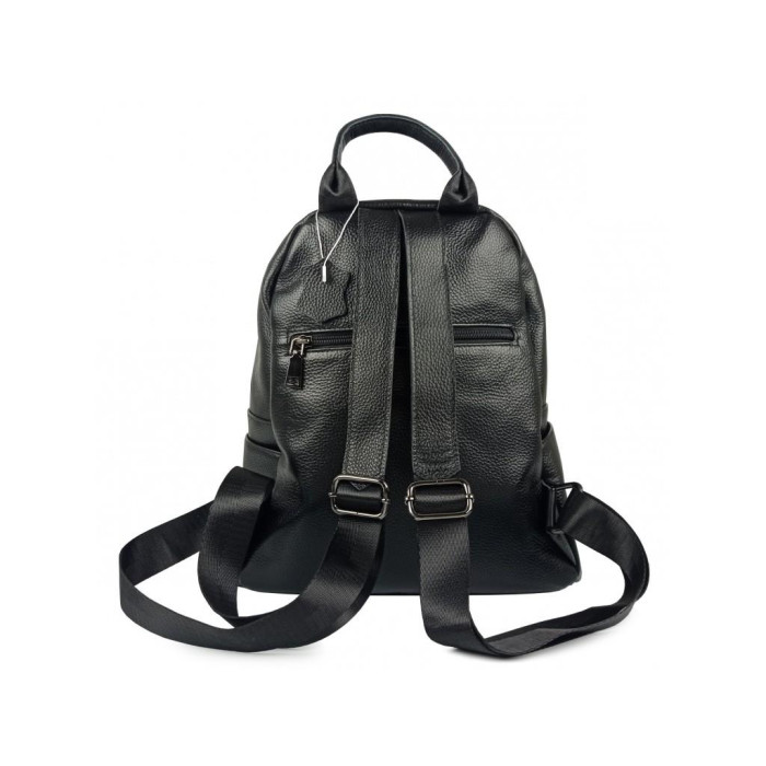 Стильний шкіряний жіночий рюкзак F-A25F-FL-868WA виготовлений з натуральної шкіри чорного кольору має зернисту текстуру.