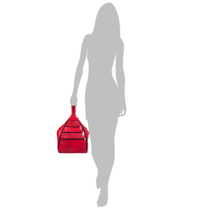 Кількість відділів: всередині 1 основне відділення, 1 прорізна кишеня на блискавці і 1 накладна відкрита кишеня. Зовні на лицьовій стороні рюкзака є 3 прорізні кишені на блискавці, а на тильній стороні виробу 2 прорізних кишені на блискавці