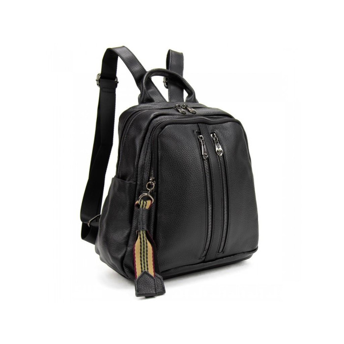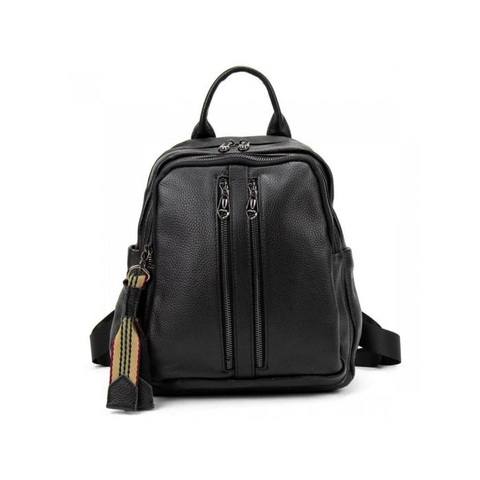 Рюкзак Olivia Leather A25F-FL-8815A пошитий із телячої шкіри, зернистої фактури, в чорному кольорі.