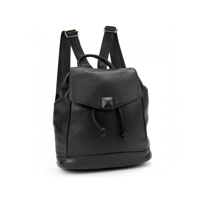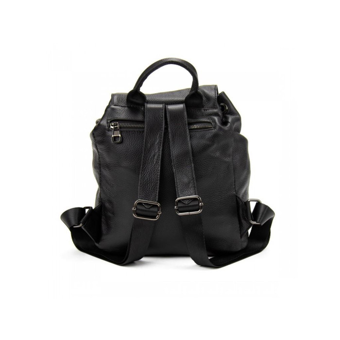 Рюкзак Olivia Leather A25F-FL-89195-1A пошитий із телячої шкіри, зернистої фактури, в чорному кольорі.