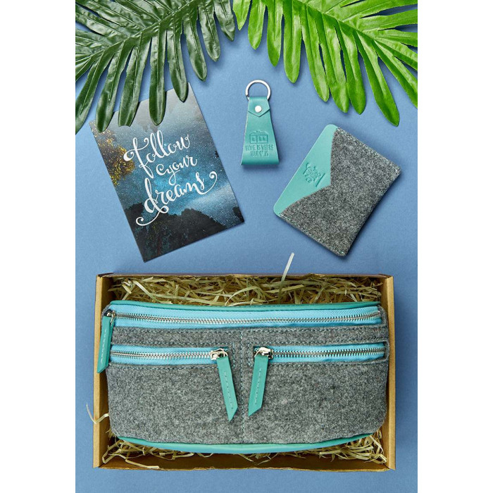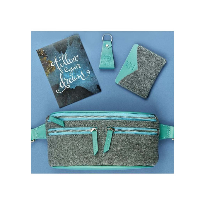 Розмір: сумка (23х12х8см), портмоне (11х9 см), брелок (4х4 см), листівка (10х15 см)