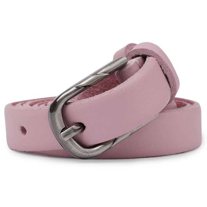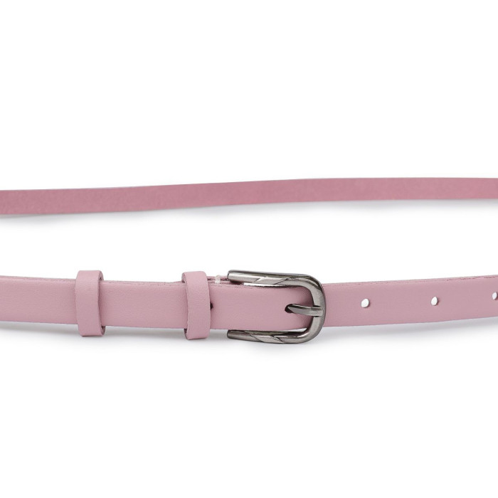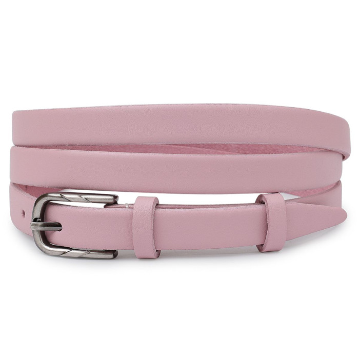 Гарний тонкий ремінь для жінок в ніжному рожевому кольорі, який можна застосовувати в якості акценту в будь-якому образі. Має класичну пряжку і гладку матову фактуру. Виконаний з натуральної зносостійкої шкіри. Дана модель підійде під штани, спідниці, сукні та інше.