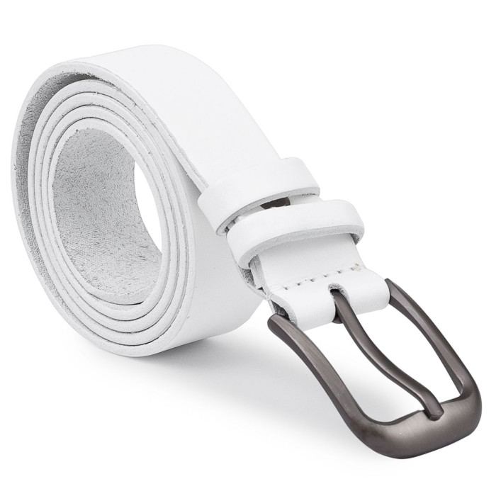 Хороший добротний жіночий ремінь стандартного розміру під джинси або під штани. Матеріал виготовлення - натуральна шкіра високої якості з підвищеною міцністю. Має матовий білий колір і приємну на дотик фактуру. Такий ремінь стане відмінним подарунком коханій жінці на будь-яке свято.