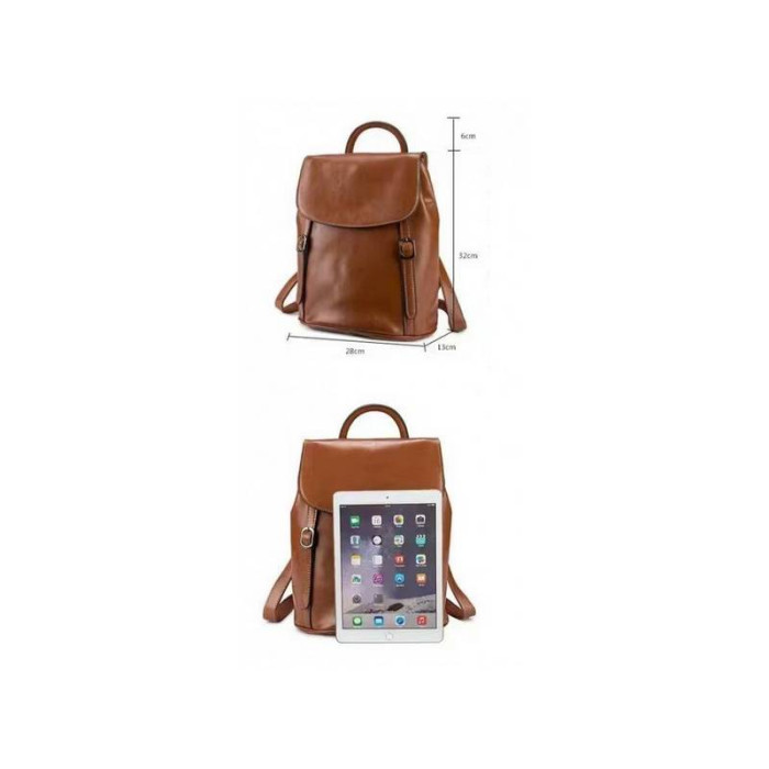 Модний жіночий рюкзак стане відмінним доповненням до повсякденного гардероба. Виконаний з світло-коричневої шкіри, аксесуар доповнений оригінальним функціоналом. Тепер можна не турбуватись за збереження речей і сміливо вирушати на прогулянку. Шкіряний рюкзак підходить до будь-якого стилю одягу, завдяки лаконічному оформленню. Гладка шкіра сама по собі є гідною прикрасою, а функціональні ремінці і високоякісна фурнітура не залишать байдужими шанувальників натуральності. Містка основна секція і кишеня на блискавці з тильного боку дозволять зібрати все необхідне в один рюкзак.