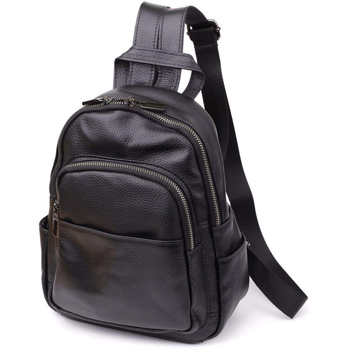 Жіночий шкіряний рюкзак виконаний у лаконічному дизайні та відмінно підходить для повсякденного використання. Модель оснащена одним основним відділенням на блискавці, всередині якої розташовані дві кишені: одна на блискавці та одна відкритого типу — для зручної організації речей.