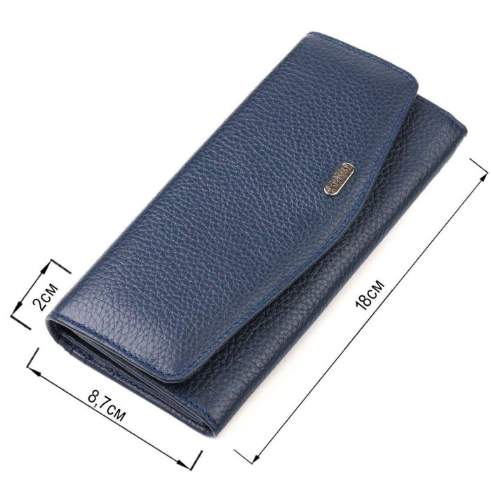 Відмінний жіночий гаманець з натуральної зернистої шкіри. Аксесуар має три основні відділення, в які поміщаються купюри всіх номіналів, дві перегородки на блискавках, чотири кишені для карток, дві прилеглі кишені, глибока кишеня на всю довжину та монетницю. Закривається аксесуар клапаном на кнопку. Відмінний аксесуар, надійний виробник, який прослужить дуже довго.