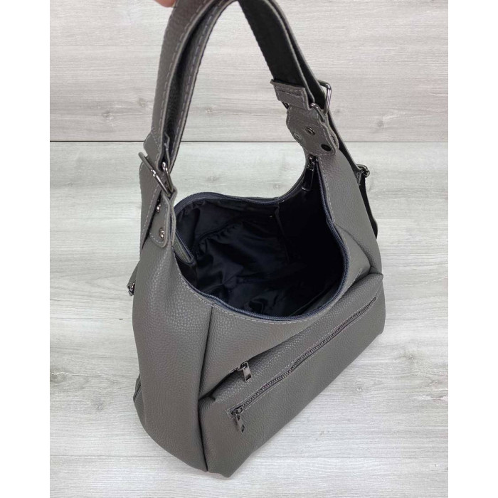 Сумки 59301 від виробника Welassie (Україна) з екошкіри високої якості. Матеріал морозостійкий, еластичний. Має одне відділення, яке відкривається за допомогою блискавки. Всередині сумки є відкрита кишеня і кишеня на блискавці. Зовні сумка має 1 відділення на блискавці і 3 кишені на блискавці.