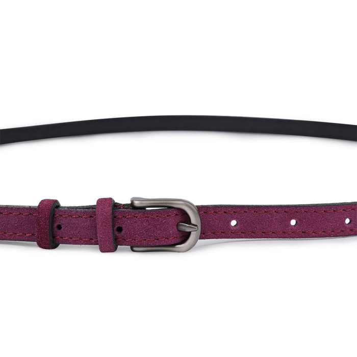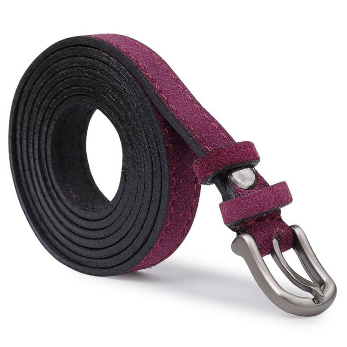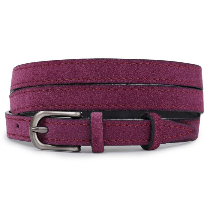 Гарний жіночий замшевий ремінь з натуральної висококласної шкіри з прекрасними експлуатаційними показниками. Має дуже привабливий фіолетовий колір, невелику акуратну пряжку з класичним механізмом і приємну на дотик фактуру. Такий ремінець стане яскравим акцентом у Вашому образі.
