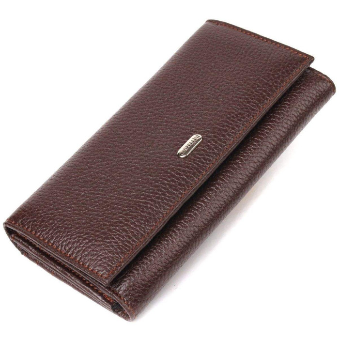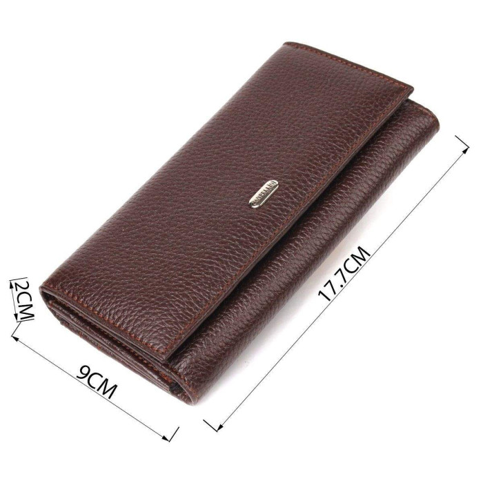 Якісний жіночий гаманець із натуральної шкіри. Аксесуар має три широкі відділення для купюр, з двома перегородками, одна перегородка закривається на блискавку, містку монетницю зовні, чотири приховані кишені та шість кишень для карток. Закривається аксесуар клапаном на кнопку. Якщо Ви хочете порадувати себе та здивувати близьких, то неодмінно купуйте шкіряні аксесуари в нашому магазині, якість і ціна Вас однозначно порадує.