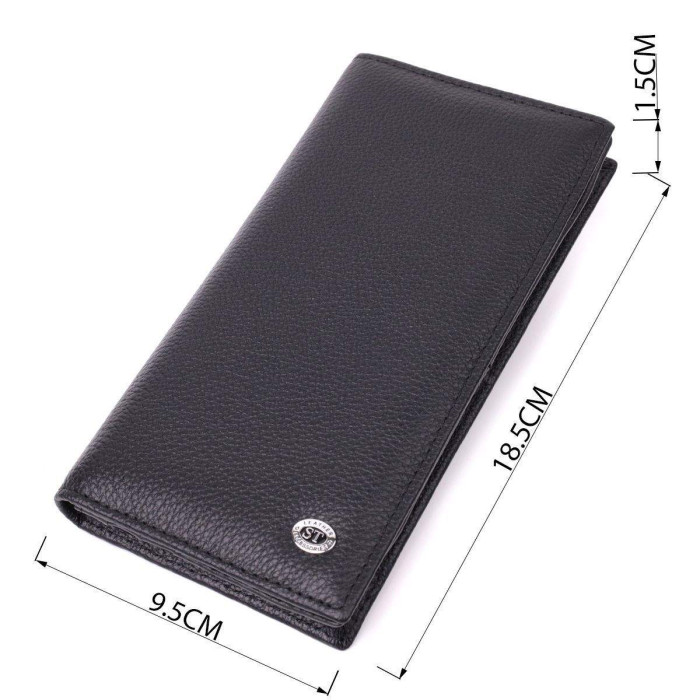 Стильний жіночий гаманець вертикального формату з добротної натуральної шкіри, з металевим логотипом виробника в правому нижньому кутку. Аксесуар складається з двох відділень для купюр, кишені на блискавці всередині, одинадцяти осередків для пластикових карток, двох прихованих кишень, однієї кишені під плівкою та монетниці, зовні. З таким гаманцем Ви проходите не один рік. Модель упакована в коробочку, що дуже зручно, якщо виріб призначений для подарунка.