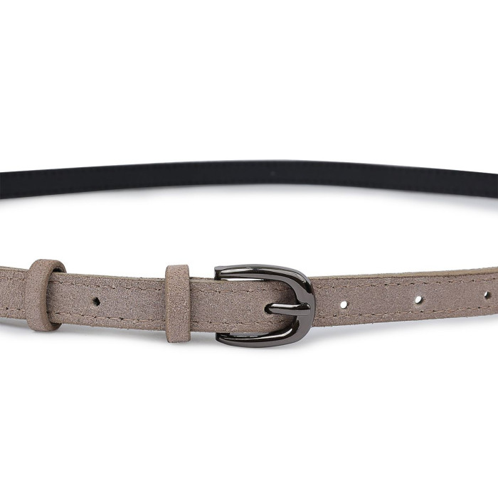 Тонкий оригінальний жіночий ремінь під будь-який стиль одягу. Має дуже популярний в даному сезоні сірий колір. Матеріал виготовлення - високоміцна натуральна шкіра з відмінними експлуатаційними характеристиками. Даний ремінь неодмінно підкреслить відмінний смак свого власника.