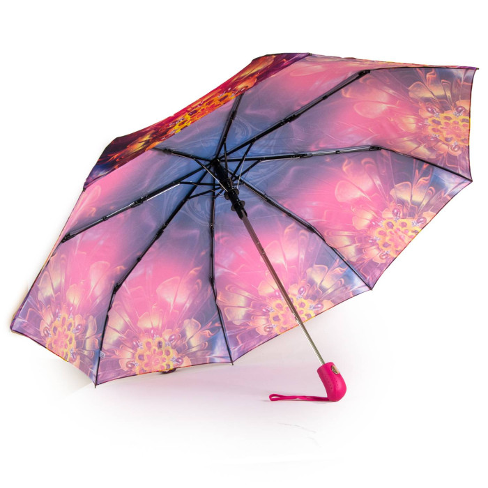 Жіночий напівавтомат зонт. Вітронепроникний купол виконаний з pongee.Спиці з вітрозахистом із металу + скловолокно (8 шт.). Купол 100 см, стрижень 56 см (у складеному стані 30 см).